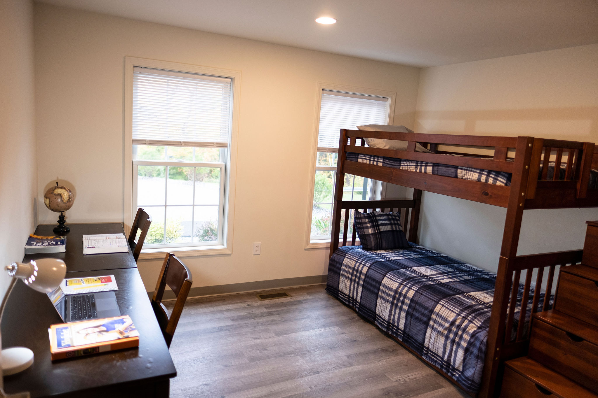 Nữ giới: 3 ngôi nhà, phòng ba giường đơn, 5-10 phút đi bộ hoặc 2 phút lái xe đến trường. Căn hộ điều phối ở cấp thấp hơn cho an toàn và chăm sóc các bé. Nhà nhìn ra quang cảnh của trường cấp ba, trong nhà có phòng khách, bếp, phòng ăn, phòng tắm.